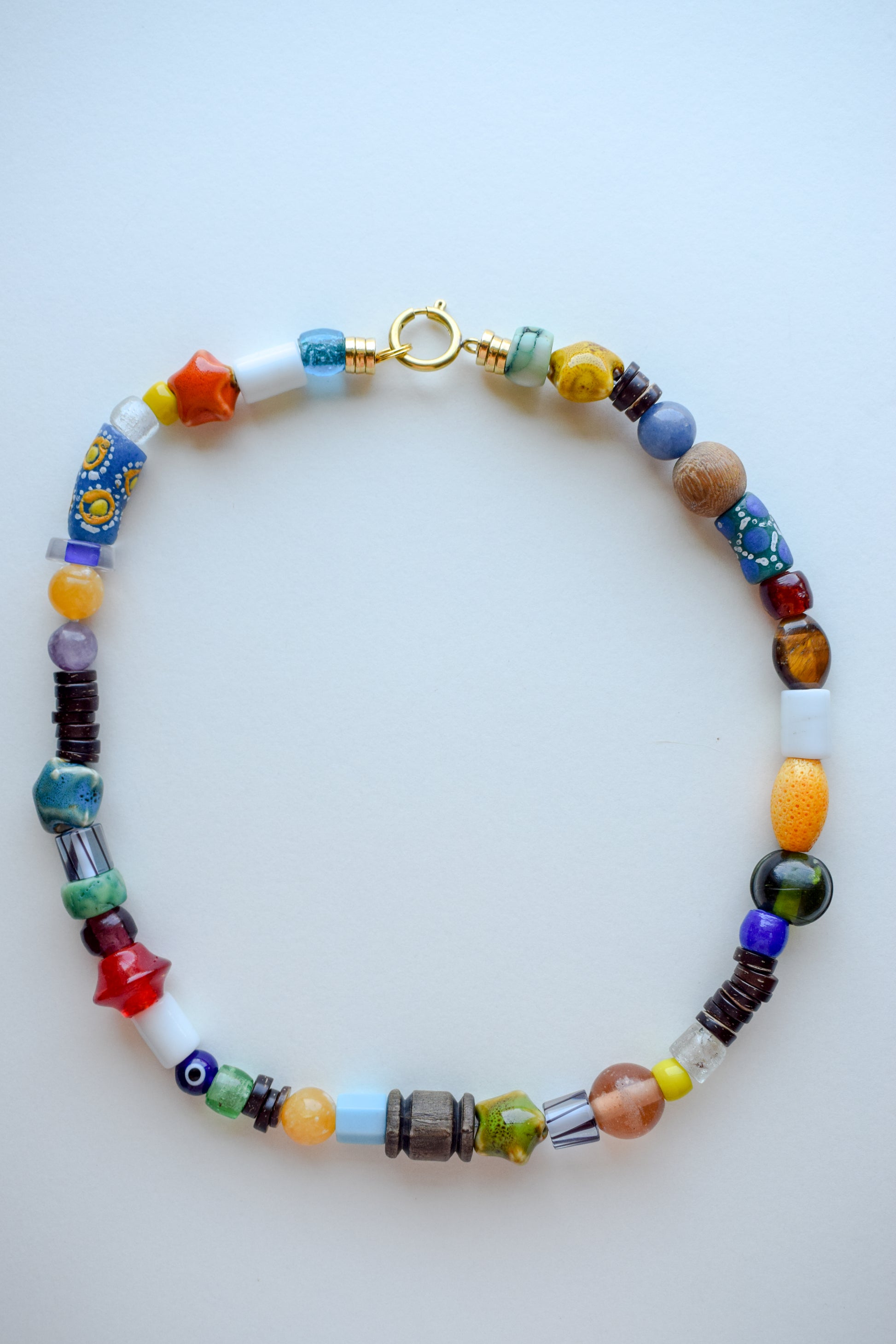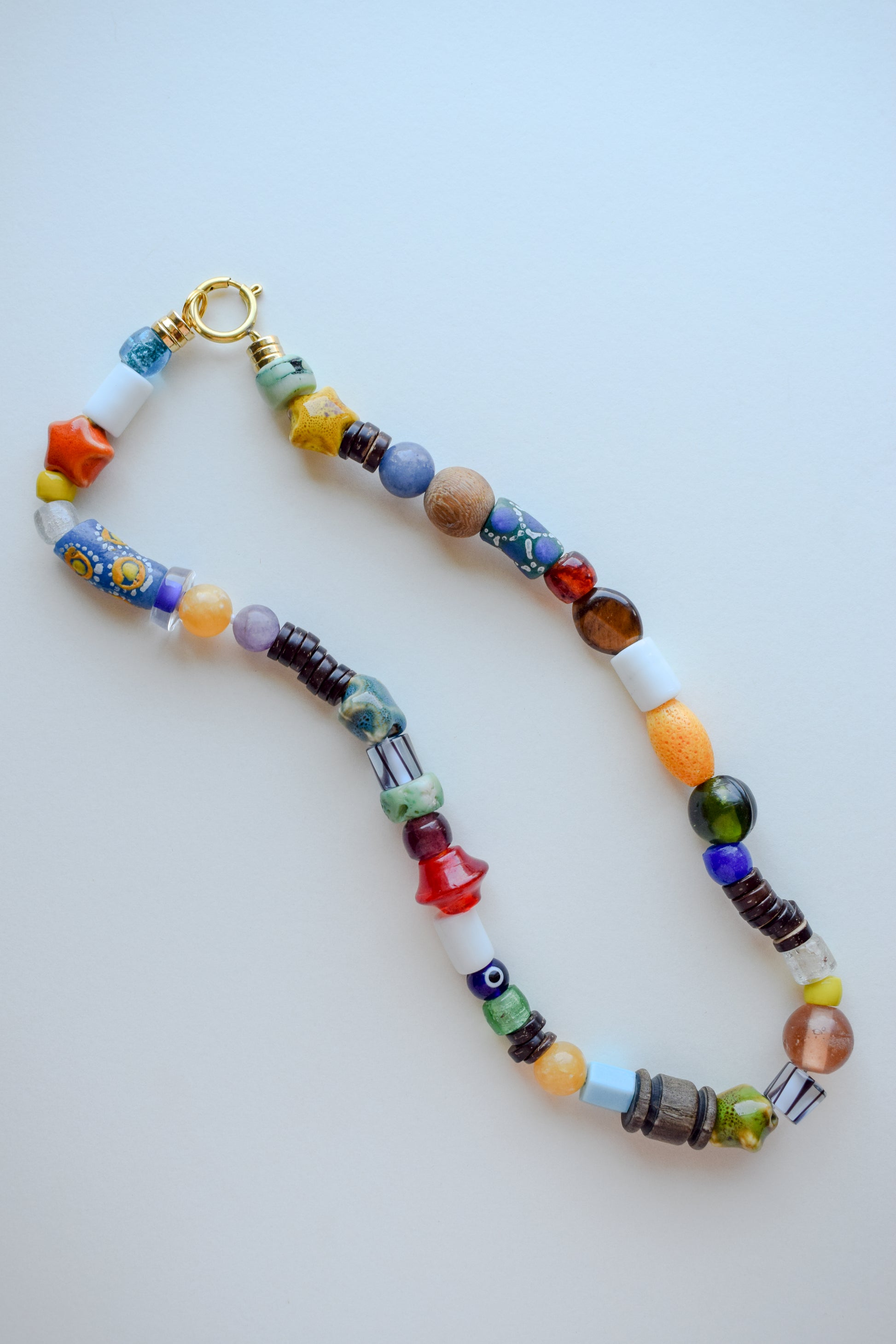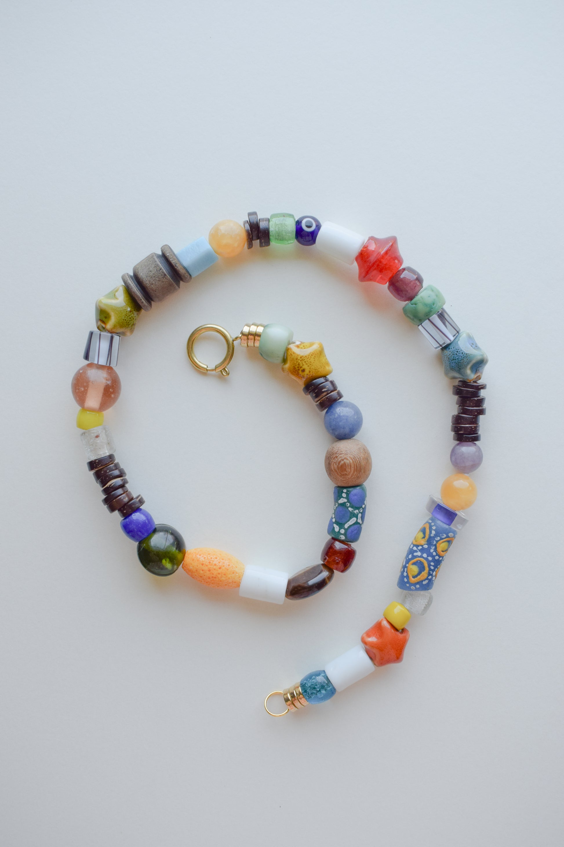 Elevate your style with the Hella Playful Necklace, a remarkable accessory that artfully combines unique ceramic stars with carefully selected vintage reclaimed beads. This necklace embodies a perfect harmony of nostalgic charm and modern sophistication, making it an ideal choice for those who value artistic expression and individuality in their jewelry. Each element is thoughtfully crafted to create a piece that is both distinctive and elegant, adding a subtle yet memorable accent to any ensemble. Designed to capture playful moments with timeless elegance, the Hella Playful Necklace invites you to celebrate creativity and refined style in every wear.