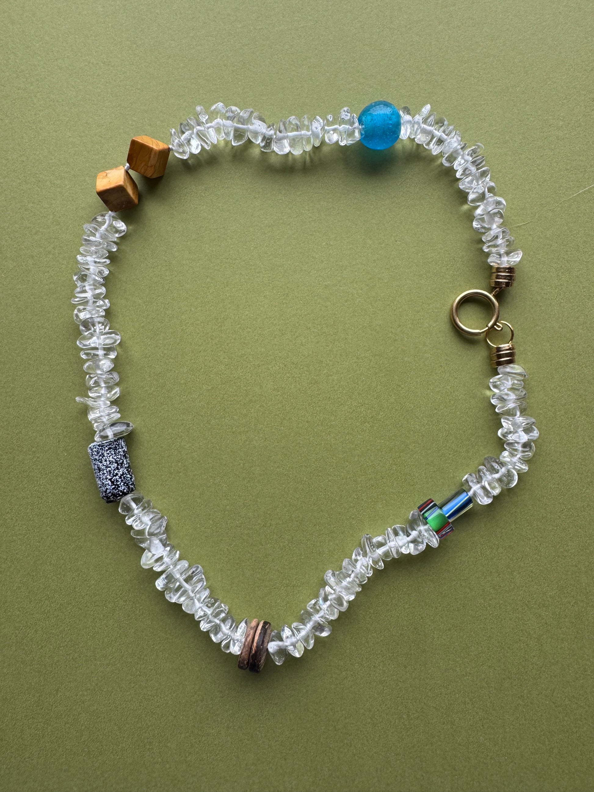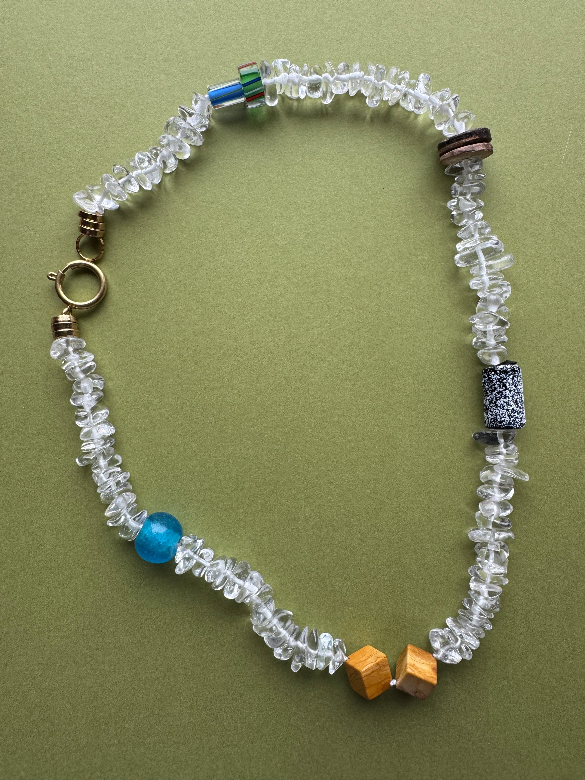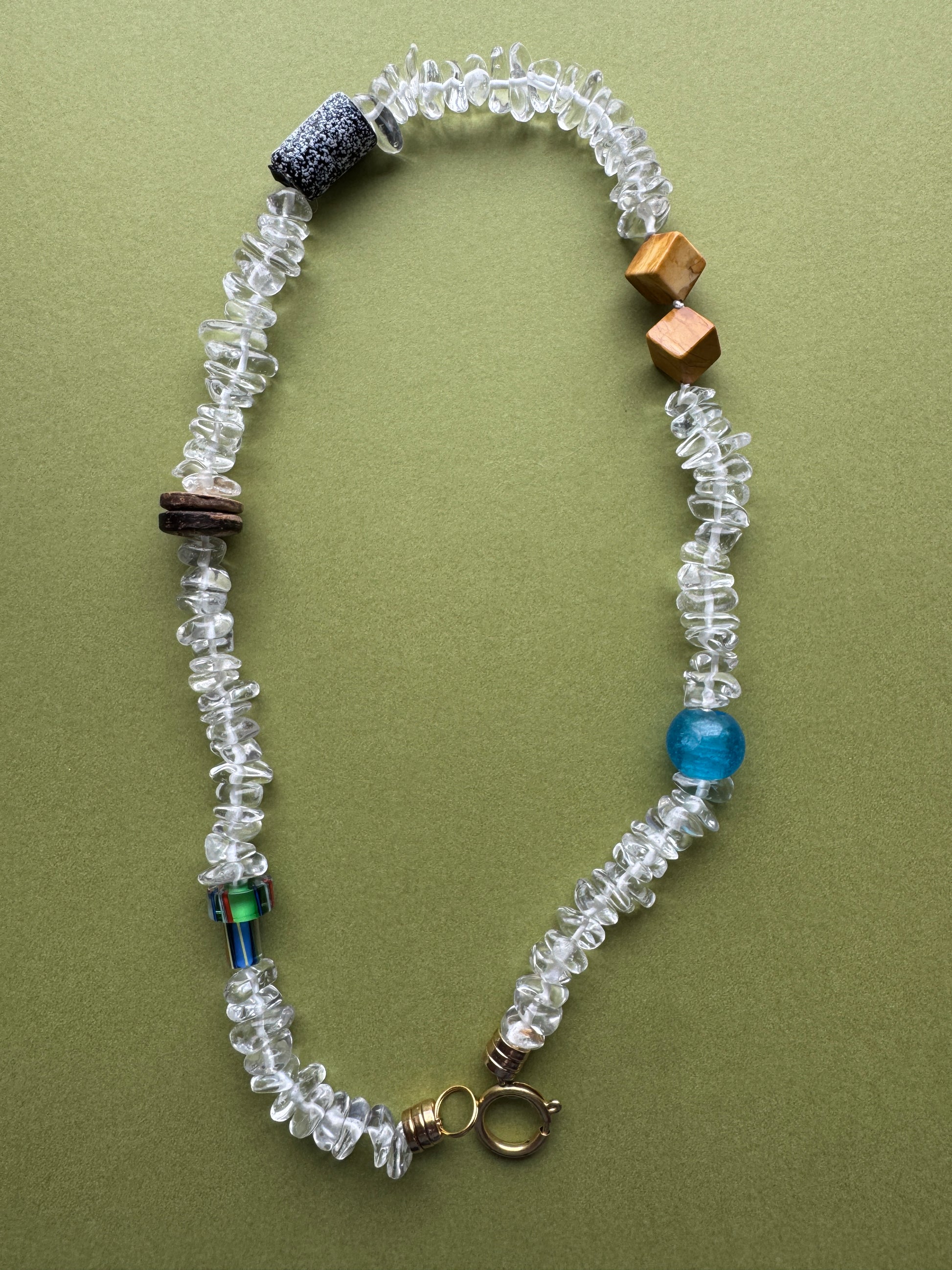The Curio Necklace in Clear Quartz is a unique treasure that elevates both everyday looks and special occasions. Its radiant clear quartz beads glow with elegant warmth, offering a sophisticated touch to any collection. Designed with versatility in mind, each bead can be worn in any direction, allowing you to let different facets shine as the star of your ensemble. This necklace seamlessly combines timeless charm with distinctive style for those who appreciate subtle luxury and enduring beauty.