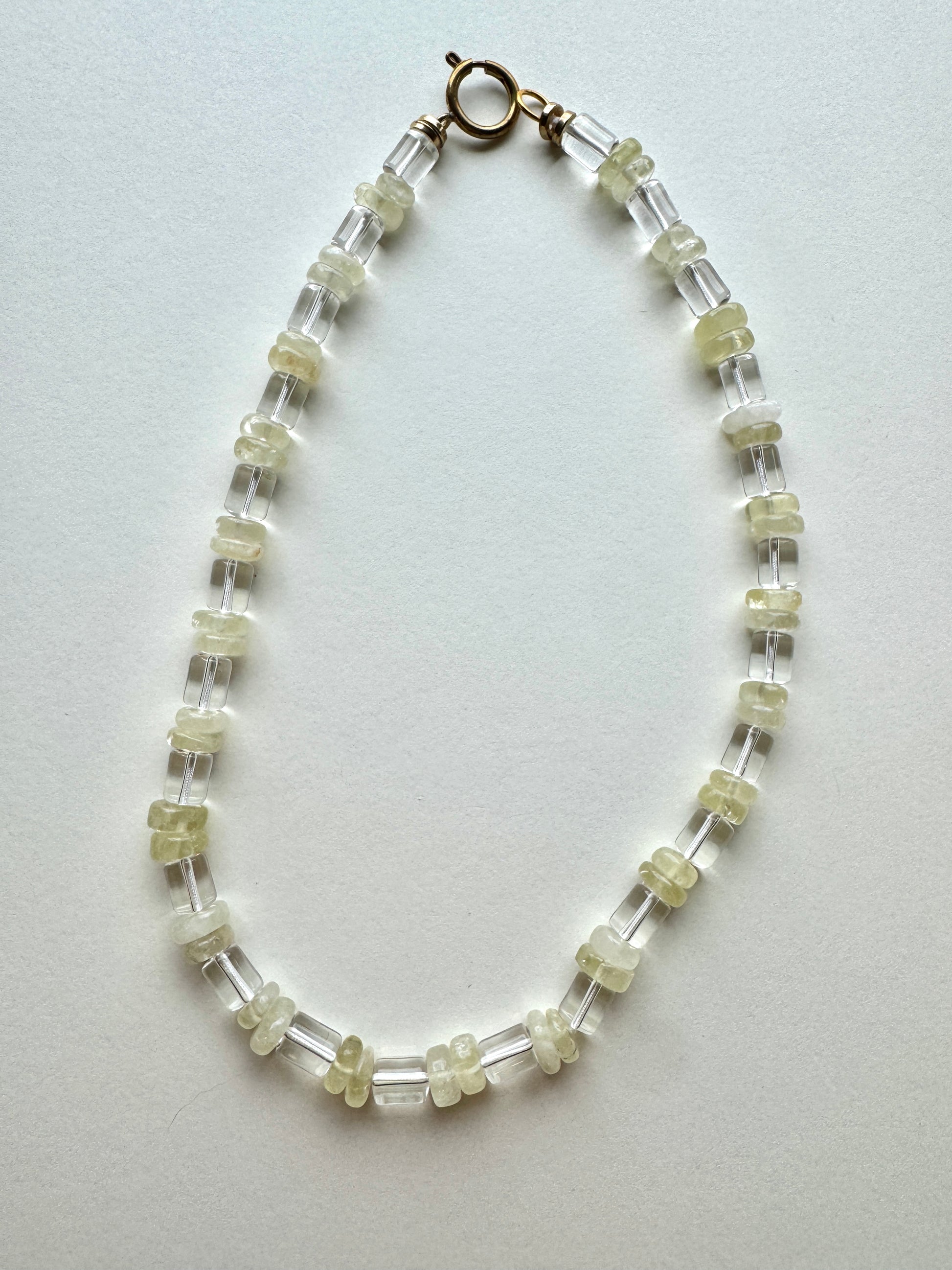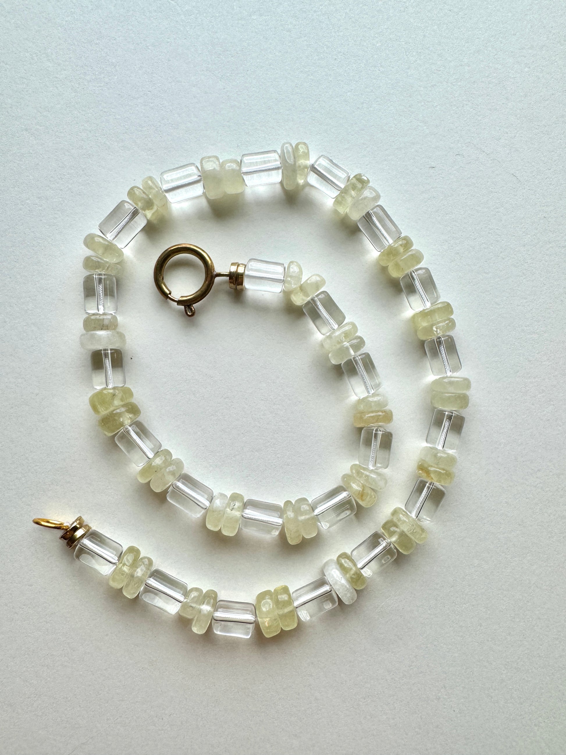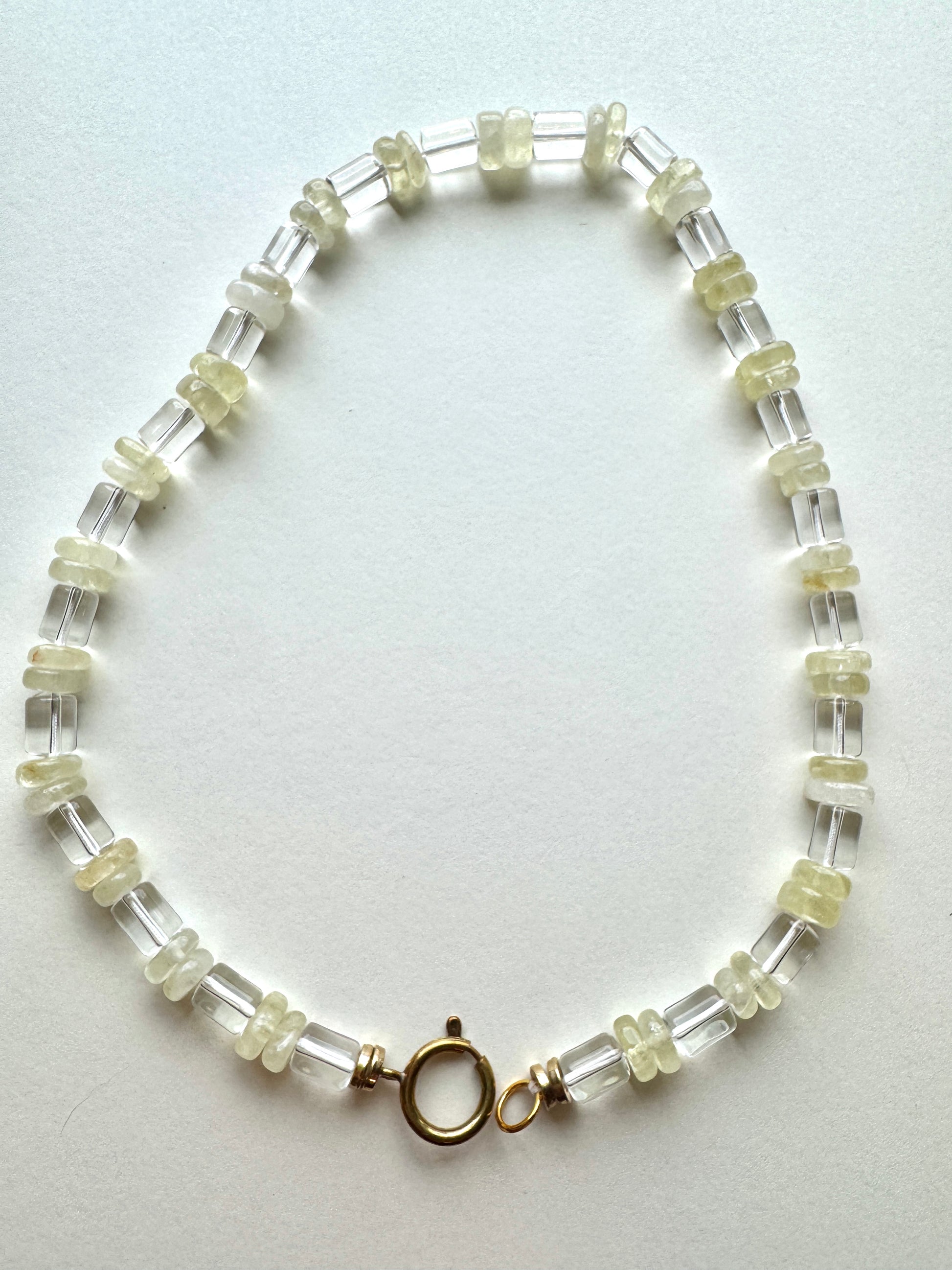 Elevate your style with the Lucky Lemon Stripe, featuring a stunning blend of lemon quartz and ice quartz. This sophisticated piece captures a cool, refreshing vibe while adding a subtle pop of color to any outfit. Perfect for those who appreciate unique elegance, its vibrant hues and crystal clarity make it a standout accessory for any occasion. Discover the lucky charm of this beautifully crafted jewelry and enjoy a bright, fun touch that complements your refined taste.