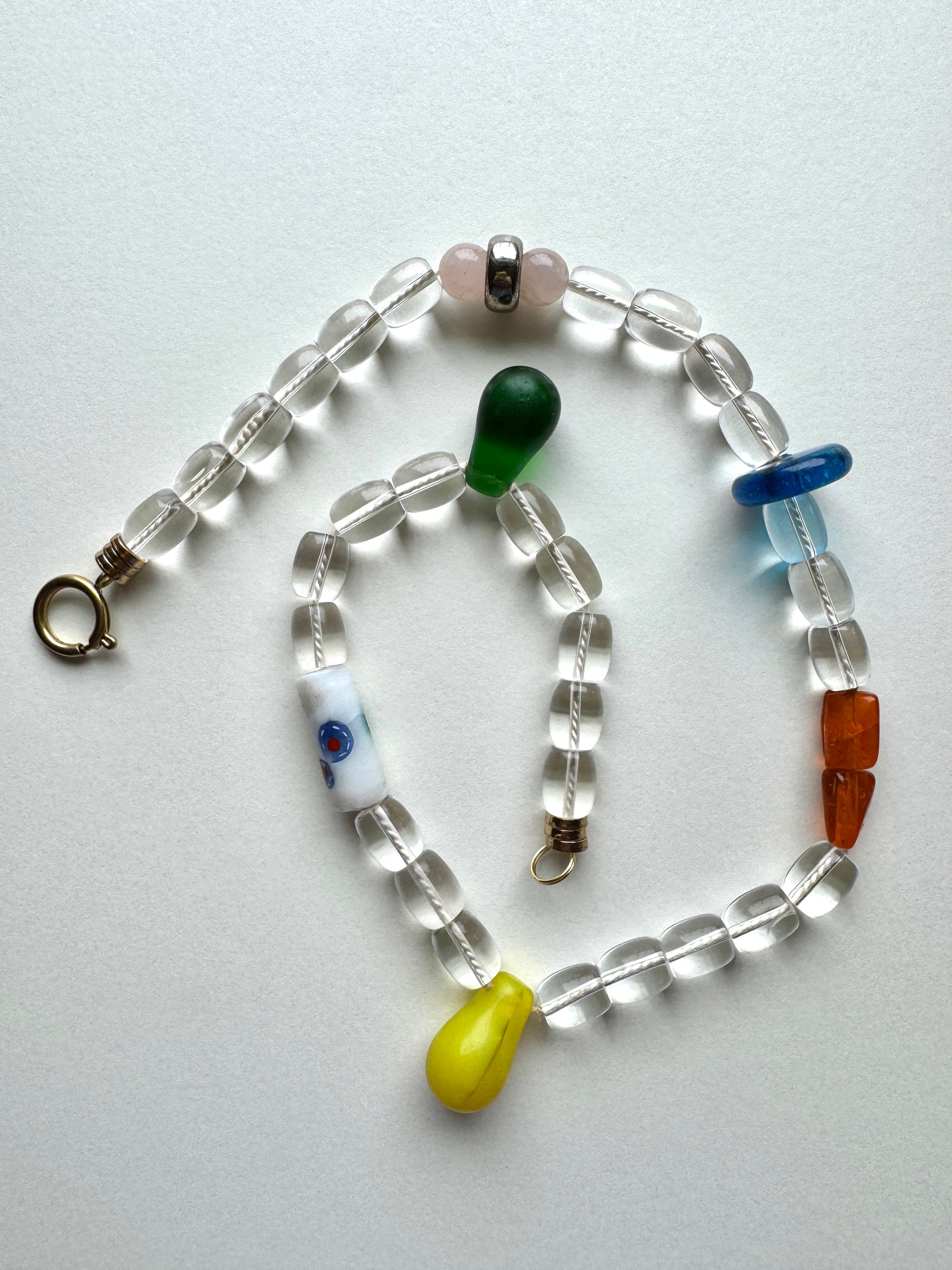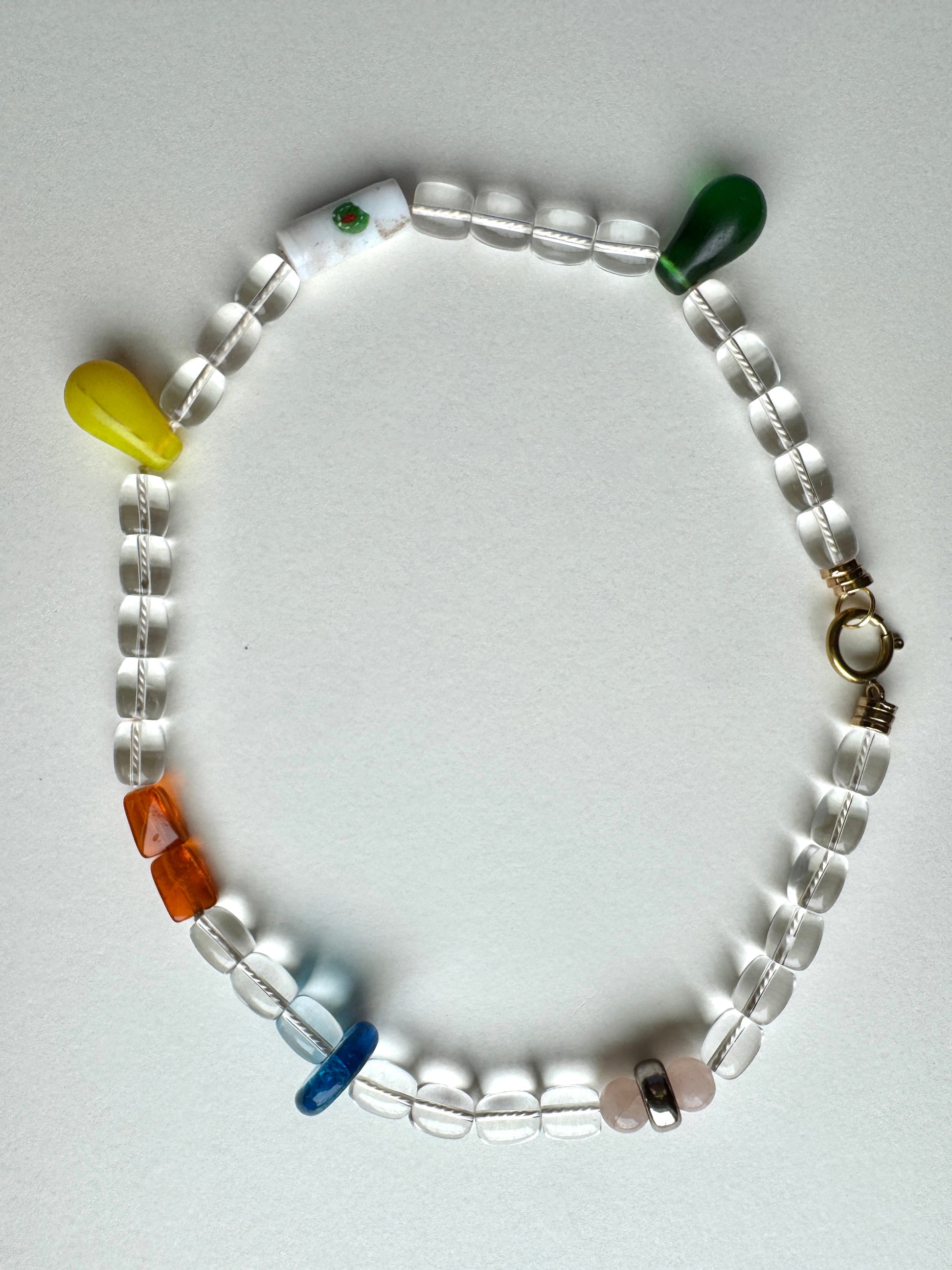 Summer Drops showcases delicate colored accents cascading alongside luminous clear quartz, creating an artfully refined piece that captures the essence of effortless elegance. This sophisticated design complements any ensemble with a subtle yet striking shimmer.
