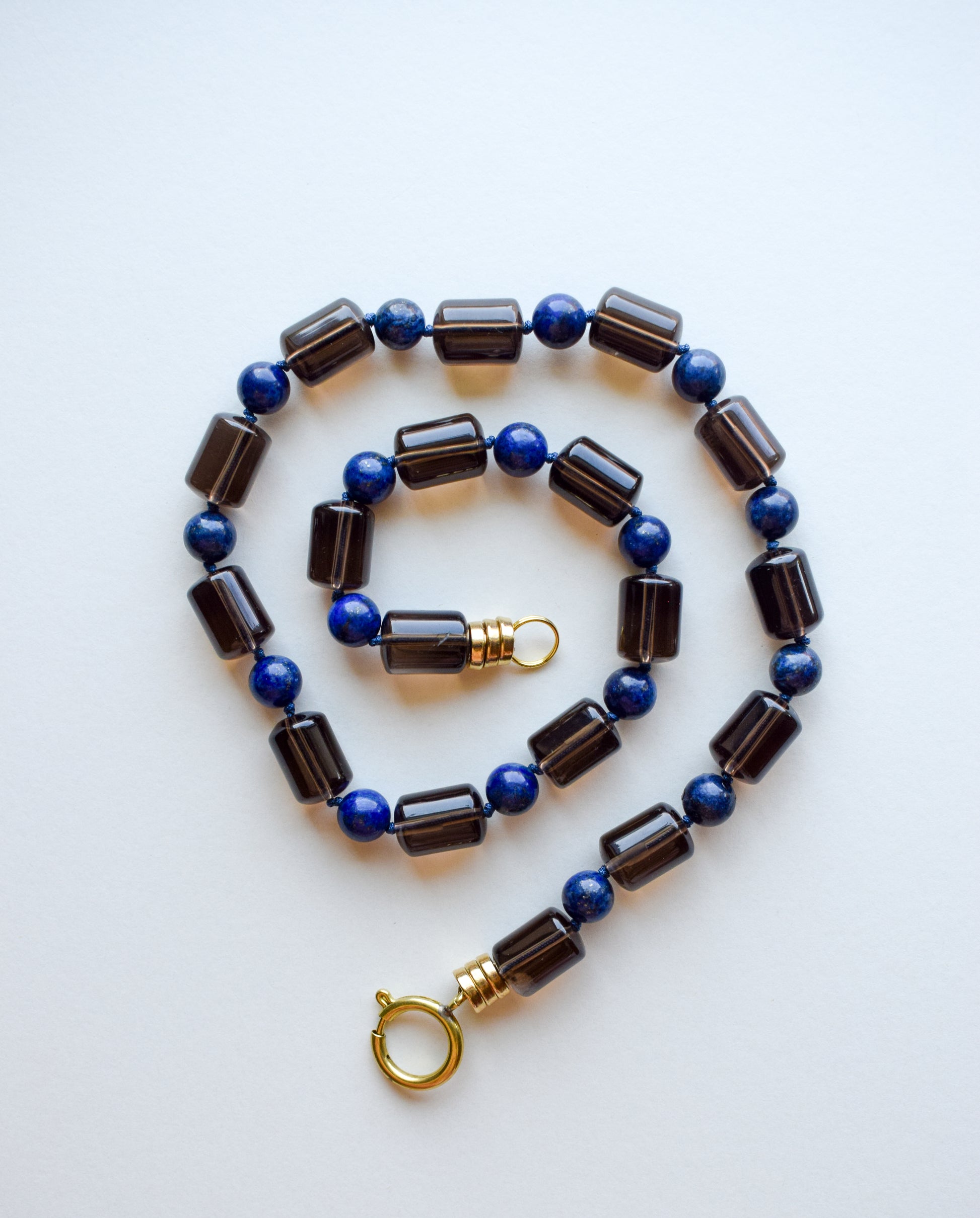 The Abyss Necklace captures the mysterious beauty of uncharted ocean depths with smoky quartz and rich lapis lazuli stones. Its deep, serene colors evoke a sense of elegant exploration, inviting you to discover hidden glory beneath the surface. Each carefully selected stone reflects the captivating interplay of light and shadow found in the deepest waters, making this necklace a symbol of refined taste and mystery. Ideal for those who appreciate subtle sophistication, it adds a timeless elegance that complements both formal and everyday attire, embodying nature’s profound allure in every detail.